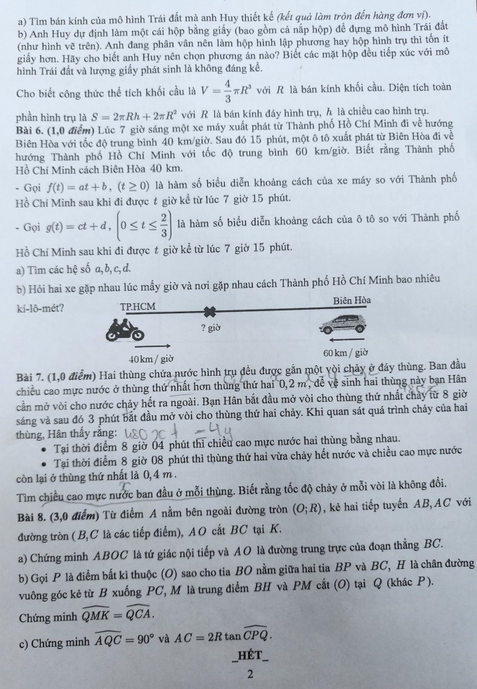 Trong các bài mà thí sinh nhắc đến, câu 5 là hình học không gian, câu 6 là công thức hàm số, đều gắn với các tình huống thực tế. Câu 7 yêu cầu thí sinh giải hệ phương trình, còn câu 8 là hình học phẳng.