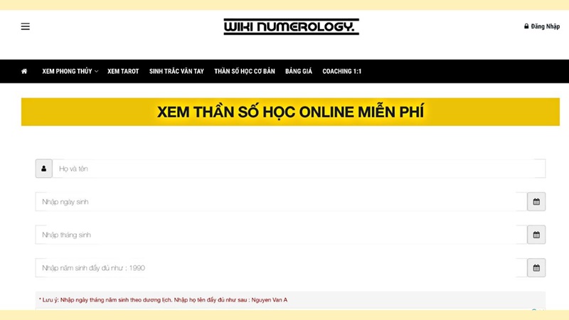 Với trang web này, bạn chỉ cần nhập họ tên và ngày tháng năm sinh thì hệ thống sẽ tự động tính toán và đưa ra cho bạn con số chính xác nhất về bản thân bạn.