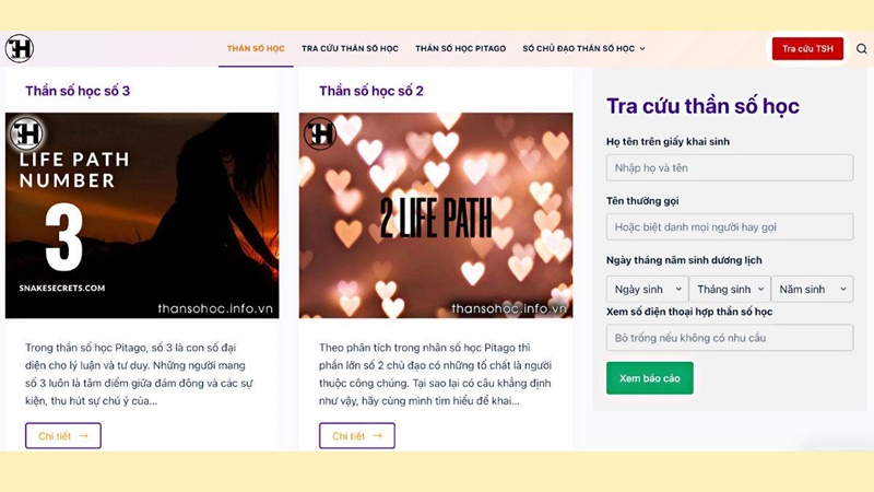 Website tra cứu thần số học VN