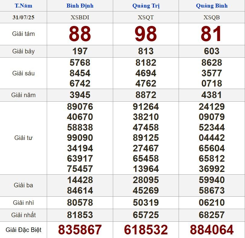 Kết quả xổ số miền Trung hôm nay ngày 2/8/2025