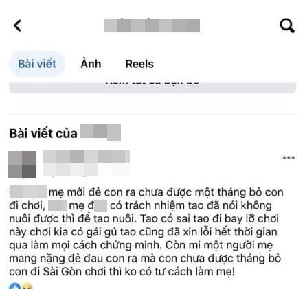 Sau bài đăng của Hoàng Phương Thi, hứng chịu hàng loạt "gạch đá" từ cộng đồng mạng, Vương Thế Thôi cũng nhanh chóng đăng đàn đáp trả vợ cũ, thẳng mặt tố Hoàng Phương Thi đã sai chuyện trai gái từ lúc mới quen, thậm chí bỏ bê con mới sinh chưa được một tháng vào Sài Gòn đi chơi.