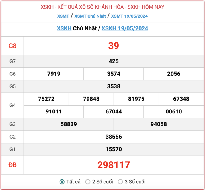 XSKH Chủ nhật, kết quả xổ số Khánh Hòa ngày 19/5/2024