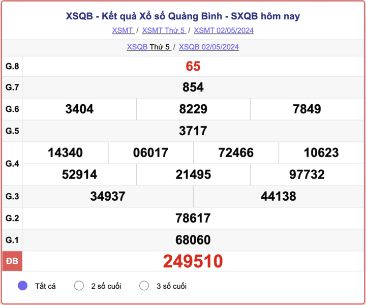 XSQB thứ Năm, kết quả xổ số Quảng Bình ngày 2/5/2024