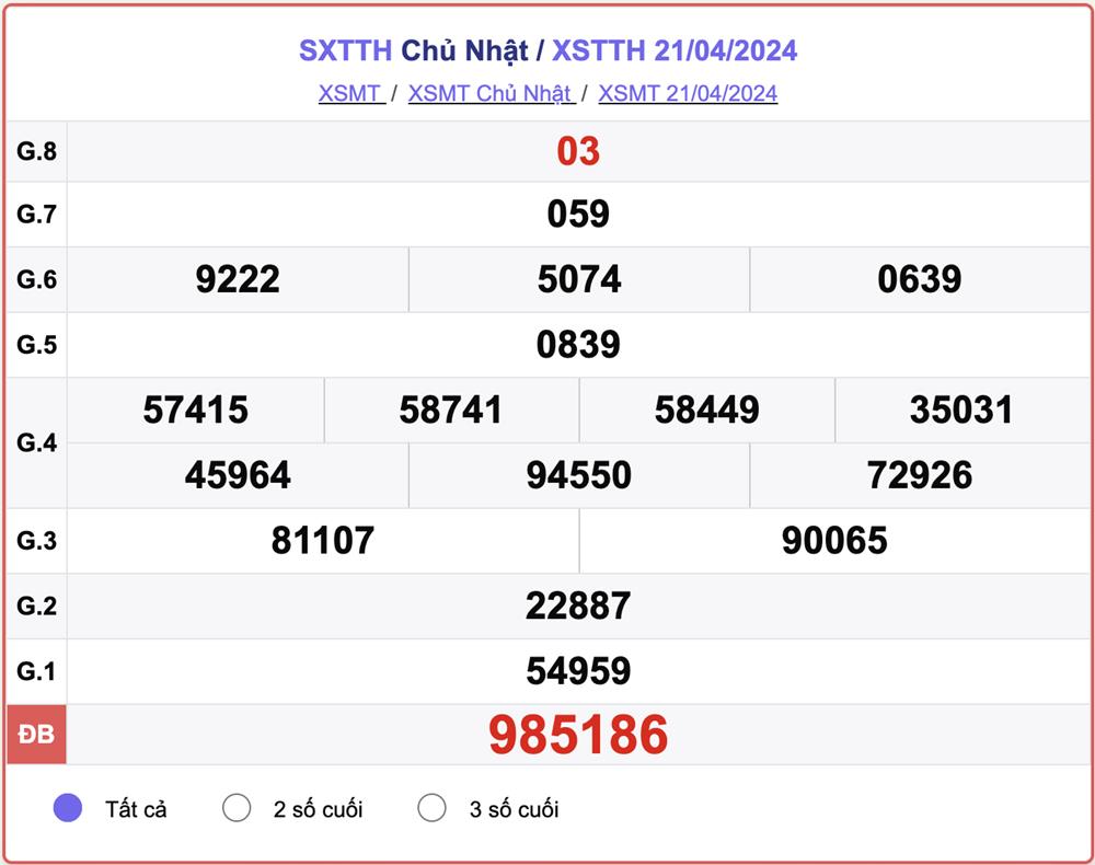 XSTTH Chủ nhật, kết quả xổ số Thừa Thiên Huế ngày 21/4/2024