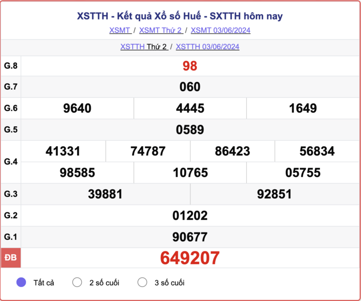 XSTTH 3/6, kết quả xổ số Thừa Thiên Huế hôm nay 3/6/2024