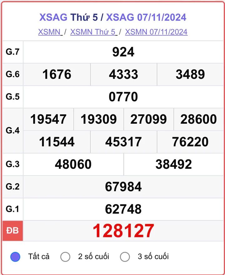 XSAG 05/12 - Trực tiếp kết quả xổ số An Giang hôm nay 05/12/2024 - Xổ số An Giang thứ Năm - XSAG hôm nay