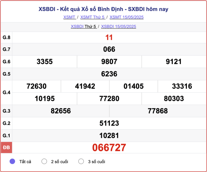 XSBDI 15/5, kết quả xổ số Bình Định hôm nay 15/5/2025.