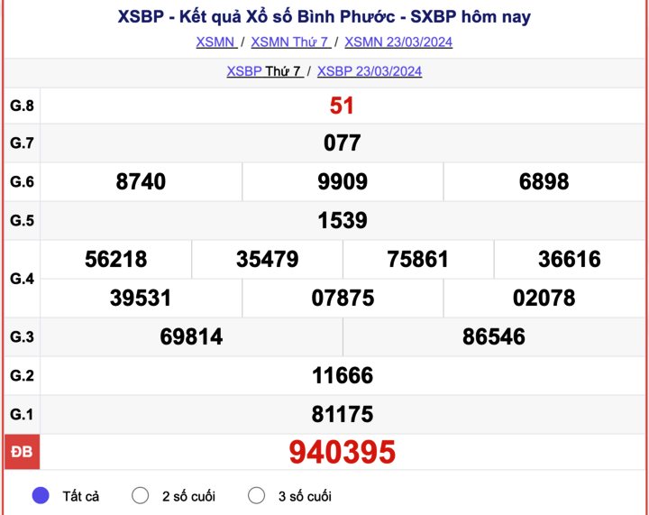 XSBP thứ 7, kết quả xổ số Bình Phước ngày 23/3/2024