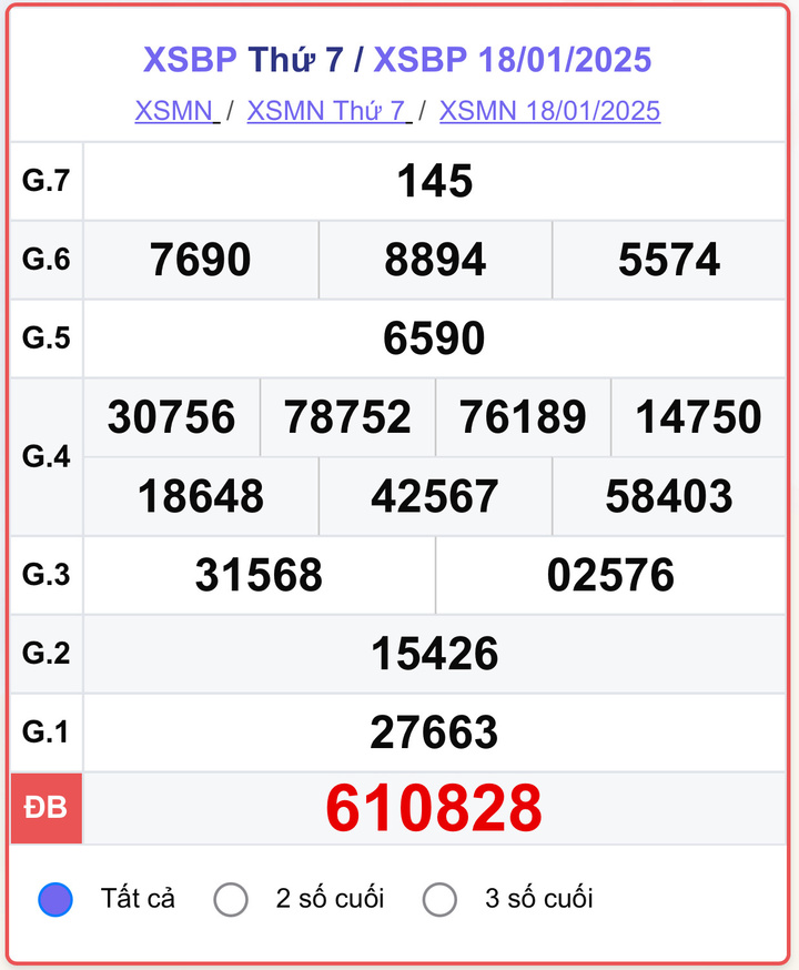 XSBP 8/2. Kết quả xổ số Bình Phước hôm nay ngày 8/2/2025 sẽ được cập nhật nhanh chóng và chính xác nhất trên LDG. Kết quả các giải thưởng XSBP 8/2/2025 được công bố lần lượt từ giải nhất cho đến giải tám, cuối cùng là giải đặc biệt.