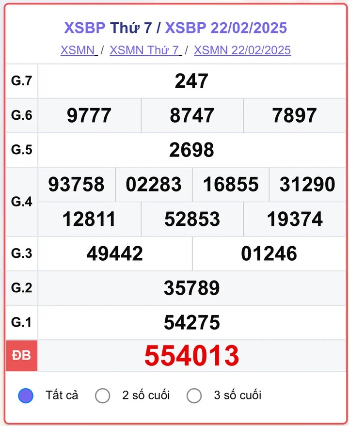 XSBP 22/2, kết quả xổ số Bình Phước hôm nay 22/2/2025.
