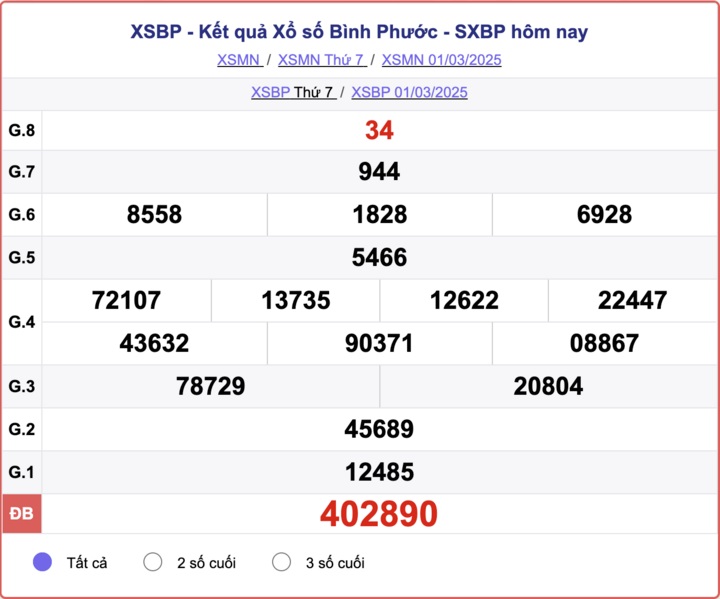 Trực tiếp Kết quả xổ số Bình Phước hôm nay - Kết quả XSBP 8/3 - XSBP hôm nay Thứ Bảy ngày 8/3/2025.