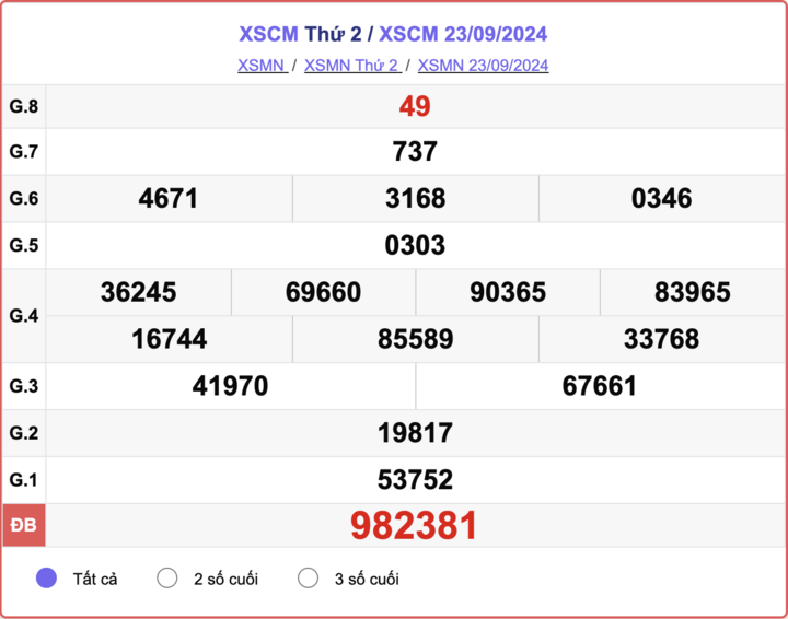 - XSCM 23/9/2024