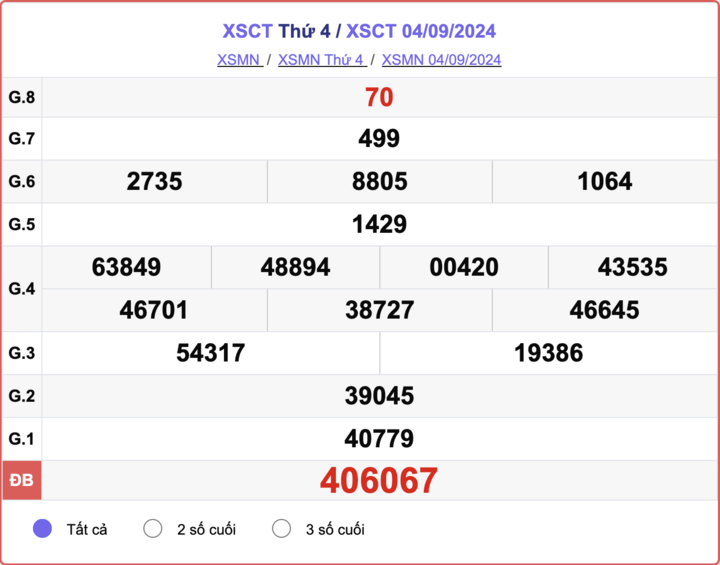 - Kết quả XSCT 5/9/2024
