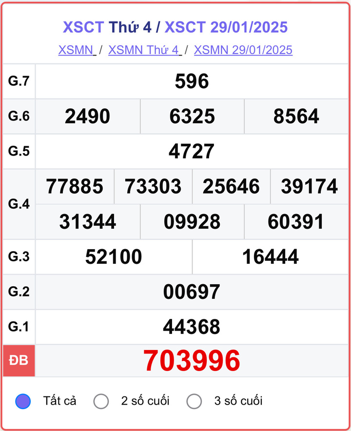 Xem lại kết quả xổ số Cần Thơ hôm nay ngày 29/01/2025