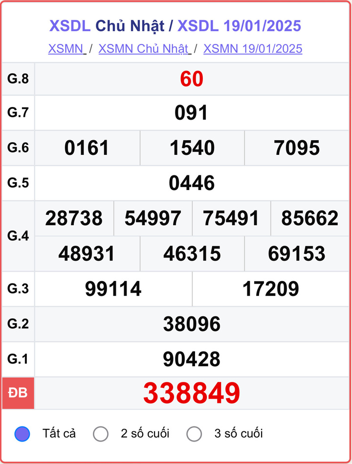 Xem lại KQXSDL các kỳ mở thưởng trước