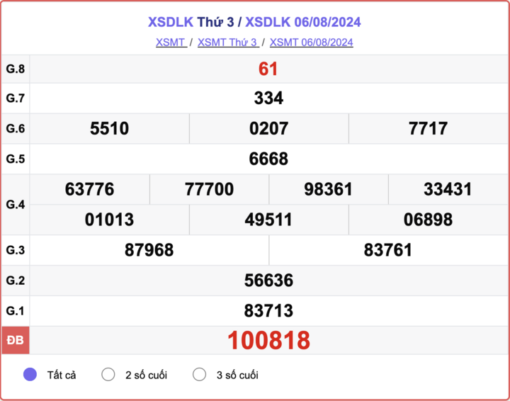 Kết quả xổ số Đắk Lắk ngày 6/8 - KQXSdlk 6/8/2024 - XSdl 6/8.