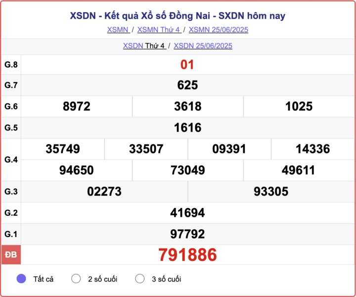 XSDN 25/6, kết quả xổ số Đồng Nai hôm nay 25/6/2025.