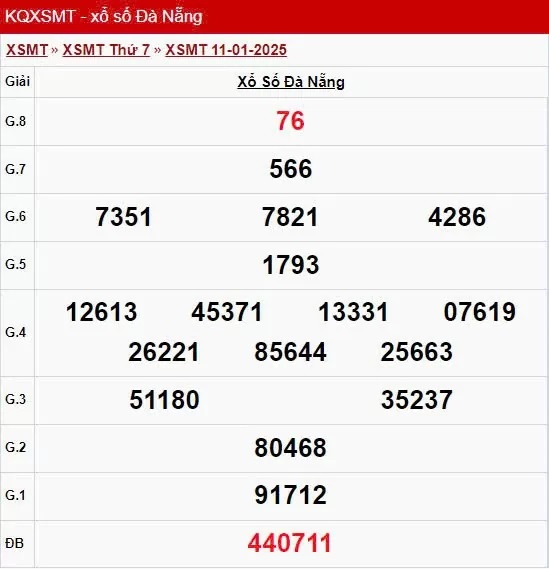 Xem lại Kết quả xổ số Đà Nẵng Thứ Bảy ngày 11/01/2025