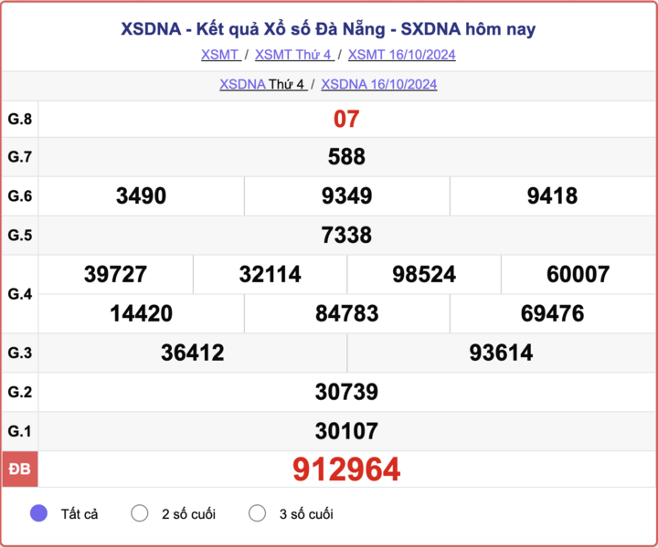 XSDNA 2/11. Kết quả xổ số Đà Nẵng hôm nay thứ Bảy ngày 2/11/2024 được quay thưởng vào lúc 17h15 bởi Công ty TNHH MTV Xổ số kiến thiết Đà Nẵng. Kết quả các giải thưởng XSDNA ngày 2/11/2024 được công bố lần lượt từ giải nhất đến giải tám, cuối cùng là giải đặc biệt.