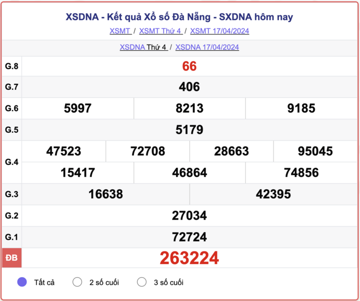 XSDNA thứ 4, kết quả xổ số Đà Nẵng ngày 17/4/2024.