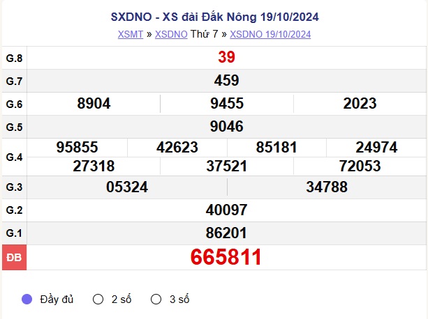 XSDNO 2/11. Kết quả xổ số Đắk Nông hôm nay - XSDNO thứ Bảy ngày 2/11/2024 được quay vào lúc 17h15 bởi Công ty TNHH MTV Xổ số kiến thiết Đắk Nông. Kết quả các giải thưởng XSDNO ngày 2/11/2024 sẽ được cập nhật liên tục từ giải nhất cho đến giải tám, cuối cùng là giải đặc biệt.