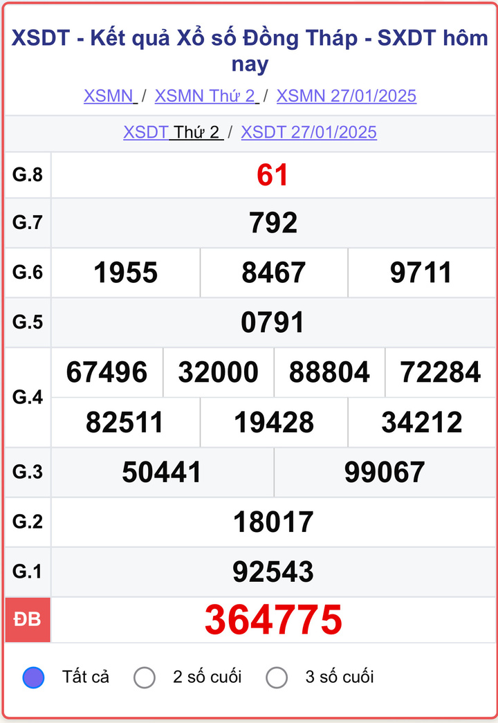 Trực tiếp Kết quả xổ số Đồng Tháp hôm nay - Kết quả XSDT 17/2 - XSDT hôm nay Thứ Hai ngày 17/2/2025