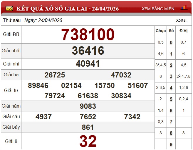 Kết quả xổ số Gia Lai ngày 24/4/2026
