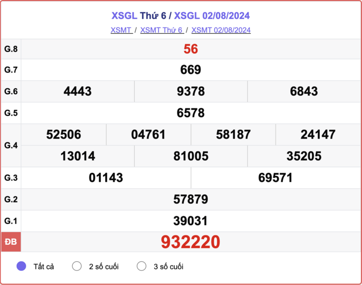 XSGL 16/8. Kết quả xổ số Gia Lai hôm nay - XSGL thứ Sáu ngày 16/8/2024 sẽ được cập nhật nhanh chóng và chính xác nhất trên phuongtruongan.vn. Kết quả các giải thưởng XSGL ngày 16/8/2024 sẽ được cập nhật liên tục từ giải nhất cho đến giải tám, cuối cùng là giải đặc biệt.
