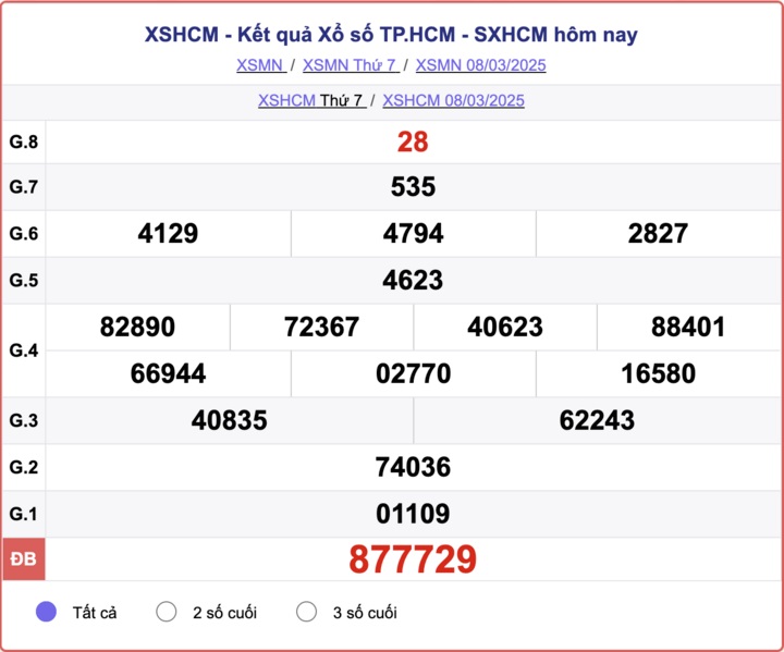 Trực tiếp Kết quả xổ số TP. Hồ Chí Minh hôm nay - Kết quả XSTP.HCM 10/3 - XSTP.HCM hôm nay Thứ Hai ngày 10/3/2025.