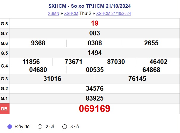 Xem lại kết quả xổ số TP.HCM các kỳ quay trước