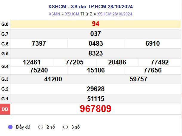 XSHCM 28/10, kết quả xổ số TP.HCM hôm nay 28/10/2024.