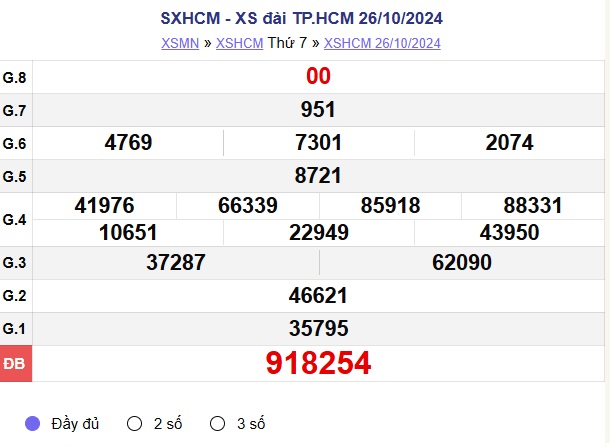 XSHCM 26/10, kết quả xổ số TP.HCM hôm nay 26/10/2024.