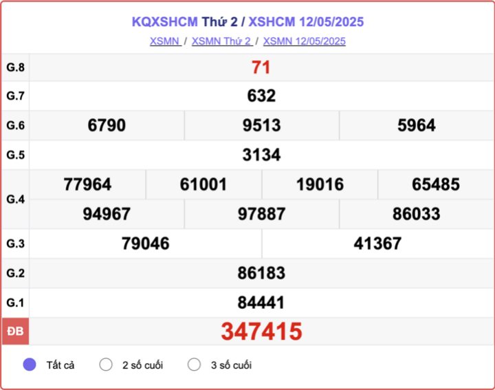 XSHCM 12/5, kết quả xổ số TP.HCM hôm nay 12/5/2025.