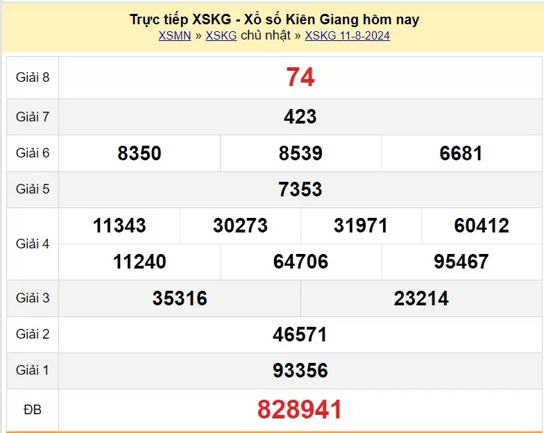 Kết quả xổ số Kiên Giang Chủ nhật ngày 11/8/2024