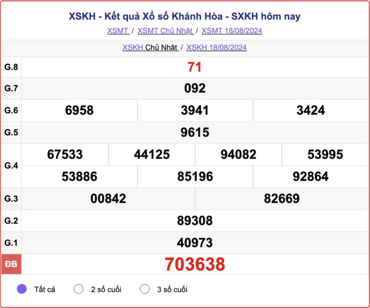 Kết quả xổ số Khánh Hòa hôm nay 18/8/2024