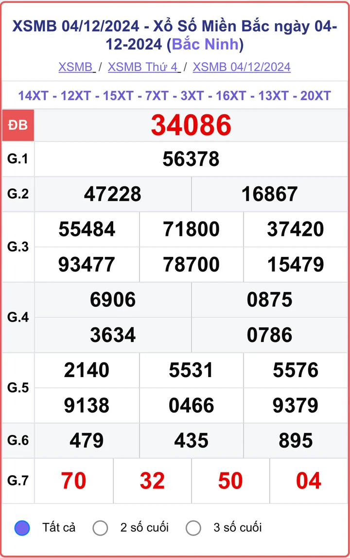 XSMB 08/12 - Trực tiếp kết quả xổ số miền Bắc hôm nay 08/12/2024 - Xổ số miền Bắc Chủ nhật - XSMB hôm nay