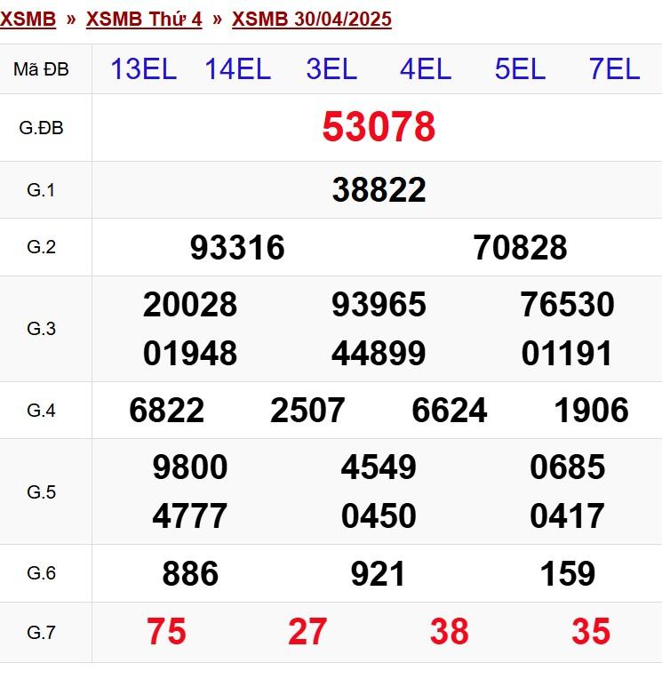 Kết quả xổ số miền Bắc (XSMB) ngày 30/04
