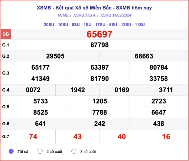 XSMB 11/9, kết quả xổ số miền Bắc hôm nay 11/9/2024.