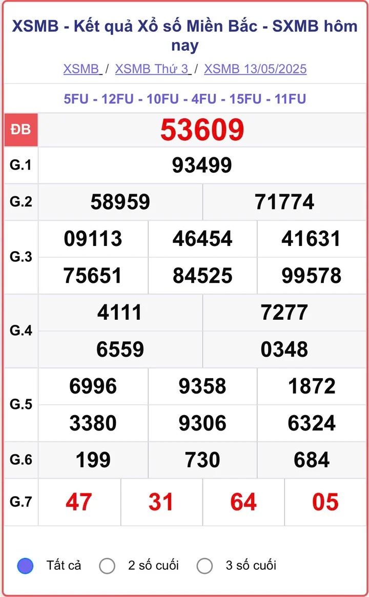 XSMB 13/5/2025. Xem lại KQXSMB ngày 13/5/2025