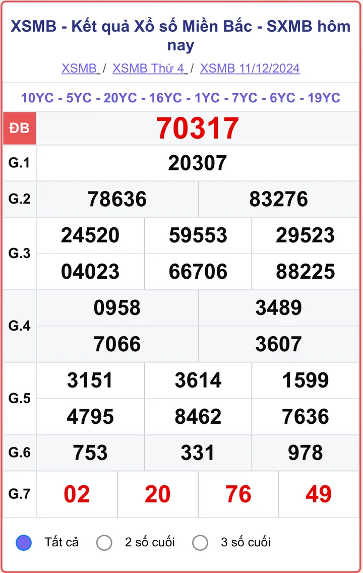XSMB 11/12/2024