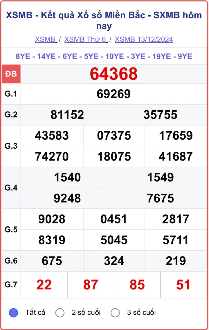 XSMB 13/12/2024