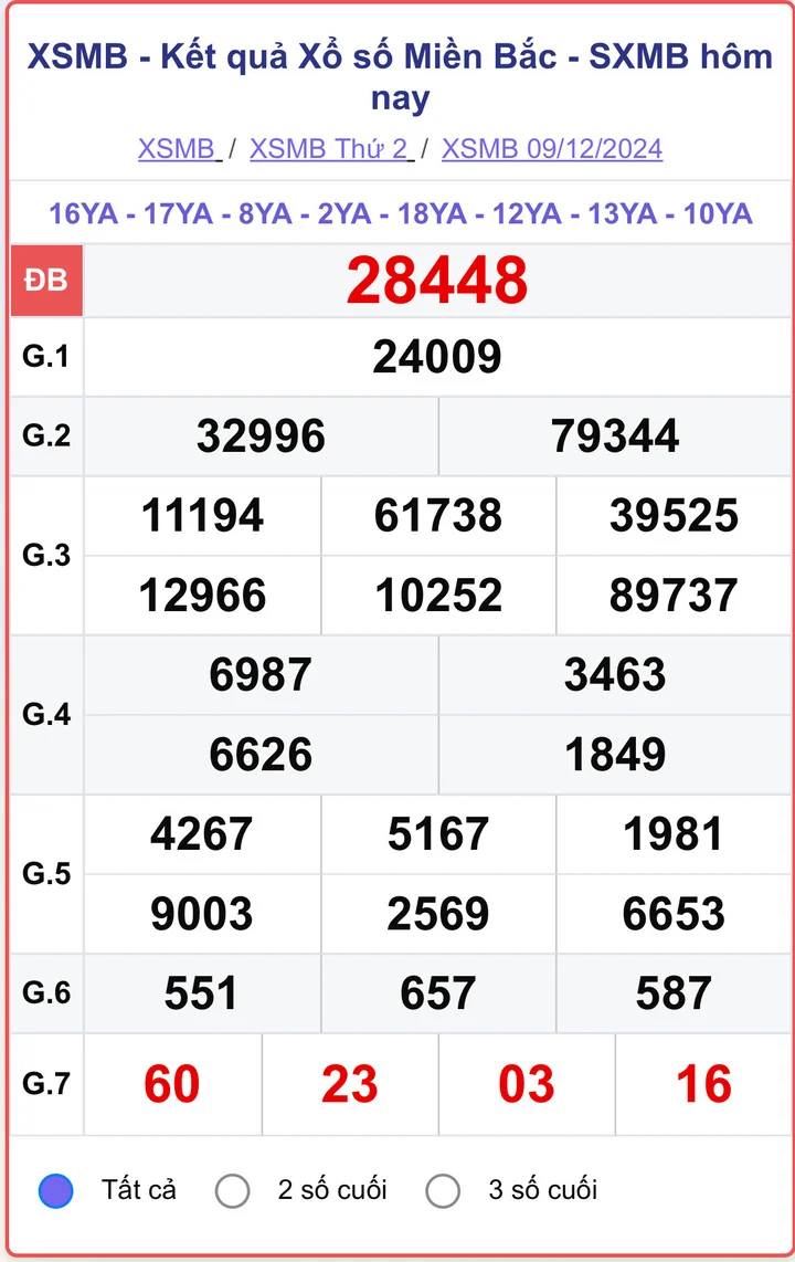 XSMB 09/12/2024