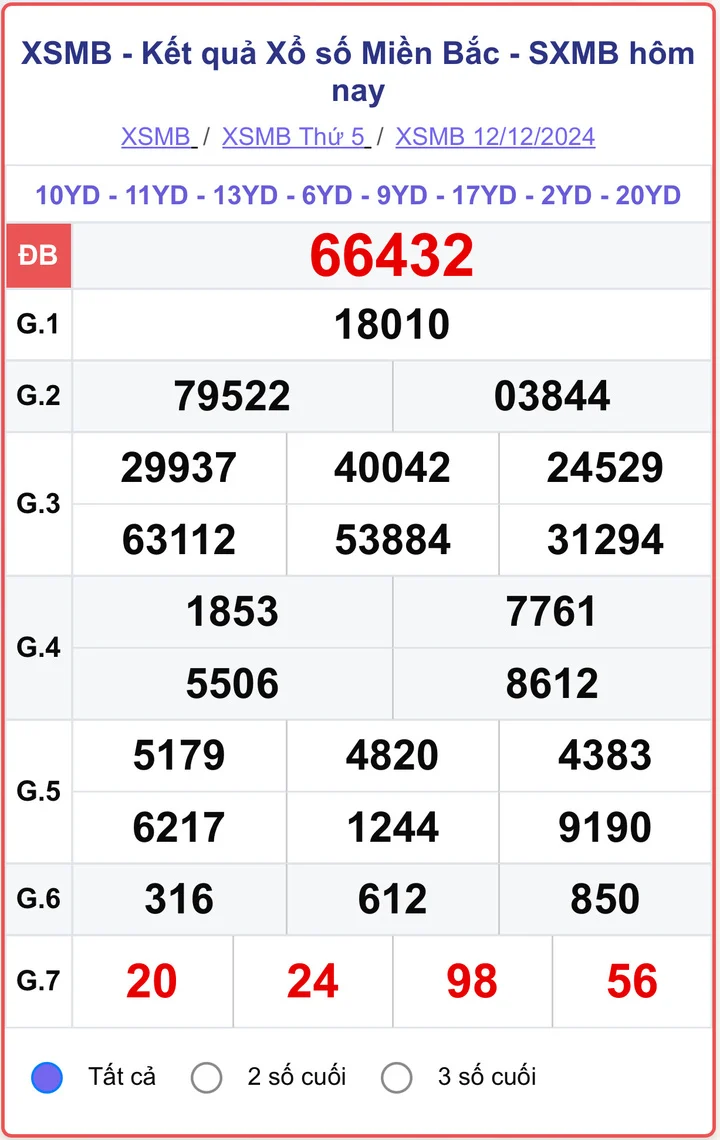 XSMB 12/12/2024