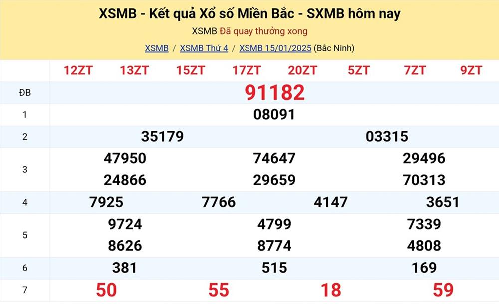 XSMB 15/1/2025