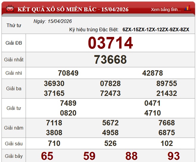 Kết quả Xổ số miền Bắc ngày 15/4/2026