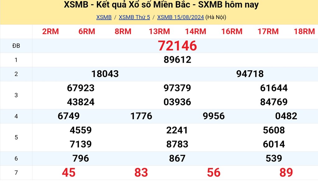 Kết quả xổ số miền Bắc ngày 15/8 - KQXSMB 15/8/2024 - XSMB 15/8.