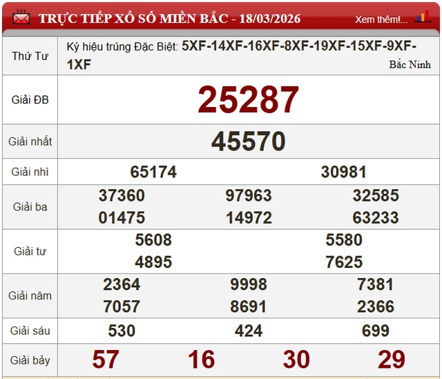 Trực Tiếp kết quả xổ số miền Bắc 19/3/2026 - XSMB 19/3