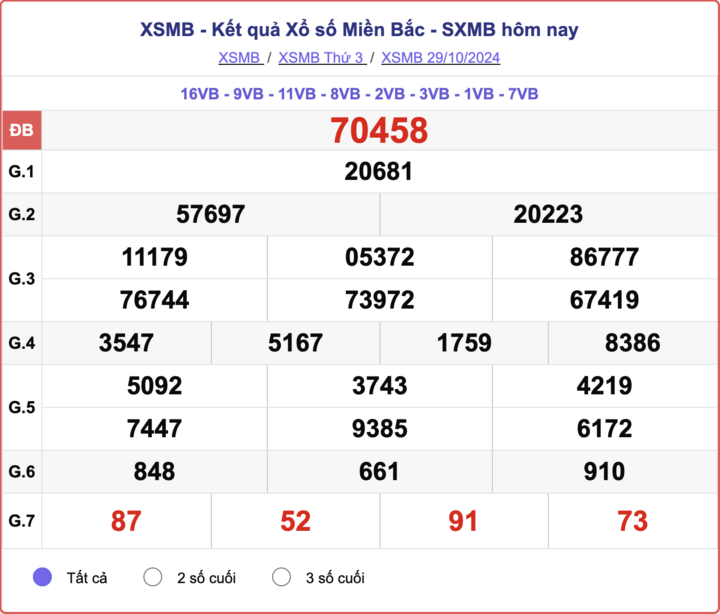 XSMB 29/10, kết quả xổ số miền Bắc hôm nay 29/10/2024.
