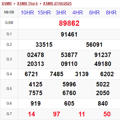 Kết quả xổ số miền Bắc (XSMB) hôm nay ngày 27/6