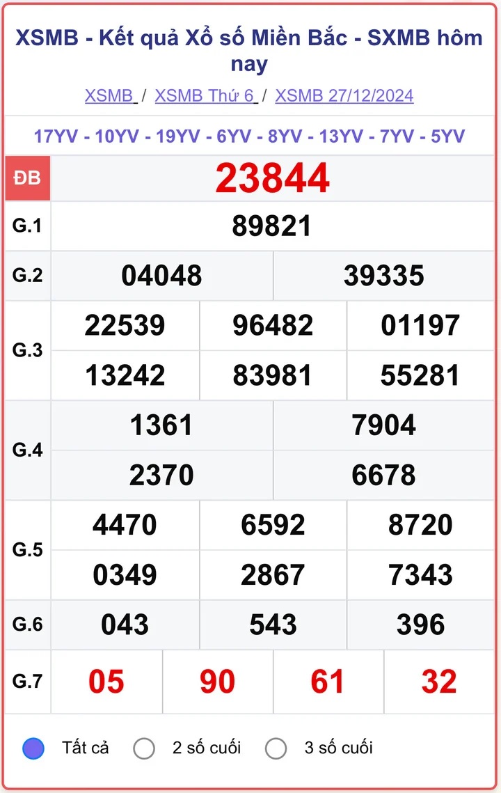 XSMB 27/12/2024